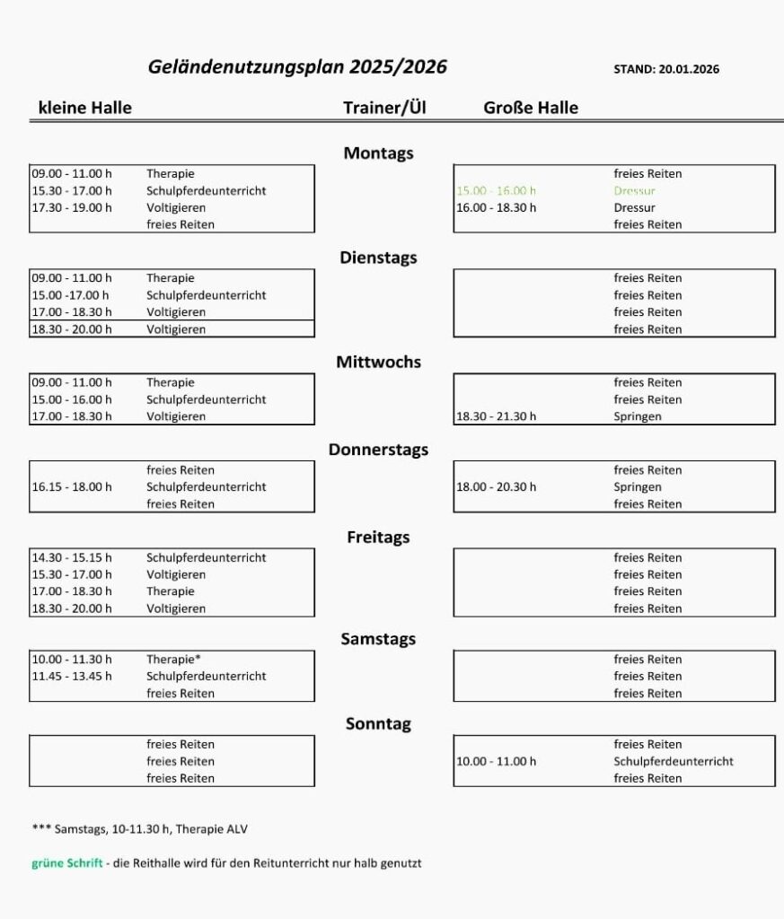 Wir bitten alle Reiter, sich an diese Zeiten zu halten!